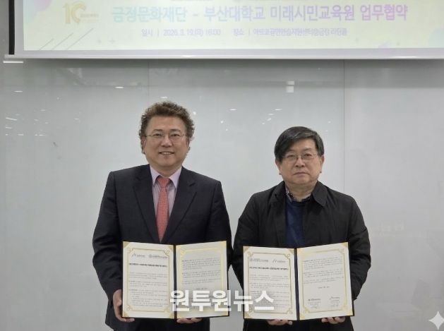 (원투원뉴스) 재단법인 금정문화재단과 부산대학교 미래시민교육원은 지난 19일, 부산 지역의 문화·예술 및 평생교육 저변 확대를 위한 업무협약(MOU)을 체결했다고 밝혔다.