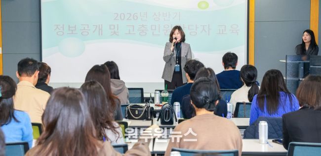 (원투원뉴스) 전북특별자치도교육청은 25일 창조나래 5회의실에서 본청, 교육지원청 및 직속기관 민원행정담당자 50여 명을 대상으로 ‘2026년 상반기 정보 공개 및 민원 담당 공무원 직무교육’을 실시했다.