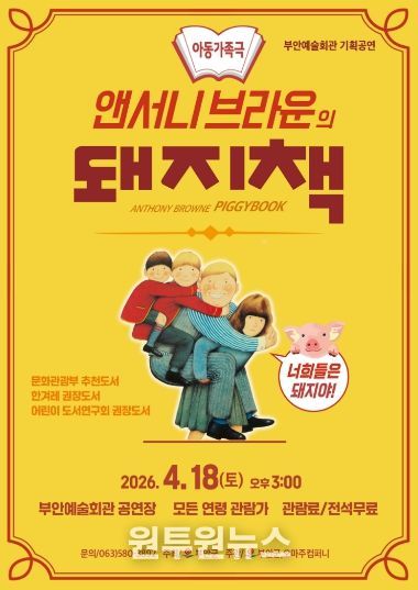 (원투원뉴스) 부안군은 가족 뮤지컬 ‘돼지책’을 오는 4월 18일 오후 3시 부안예술회관 공연장에서 공연한다고 밝혔다.
