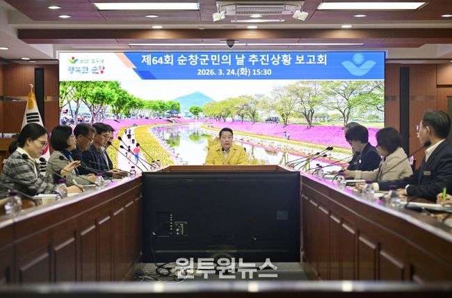 (원투원뉴스) 순창군은 지난 24일 군청 2층 영상회의실에서 ‘제64회 순창군민의 날 행사’의 성공적인 추진을 위한 추진상황 보고회를 개최했다고 밝혔다.