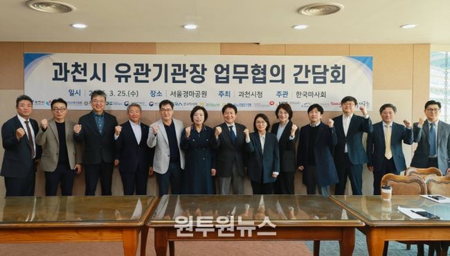 (원투원뉴스) 과천시는 25일 한국마사회 서울경마공원에서 관내 주요 관계기관장이 참석한 가운데 업무협의 간담회를 열고, 기관 간 협력 방안을 논의했다.