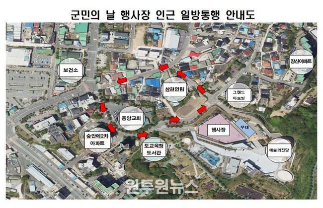 많은 군민들이 방문할 것으로 예상됨에 따라 영광군과 군민의날 추진위는 원활한 교통흐름과 안전을 위해 2일의 행사기간 동안 보건소 사거리 ⟶ 영광중앙교회 ⟶ 전남교육청도서관 ⟶ 그랜드 아트빌 사거리 ⟶ 삼현연립 ⟶ 송하카센타 방향으로 일방통행을 유도할 계획이다.