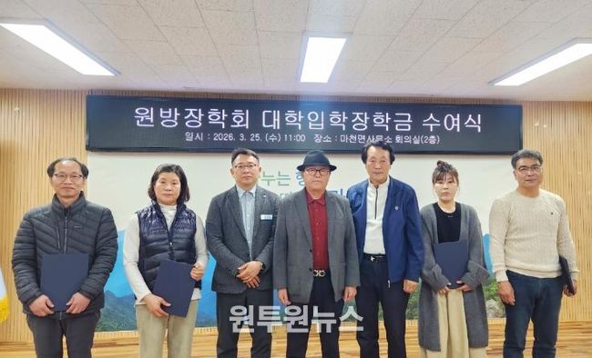 (원투원뉴스) (재)원방장학회가 올해도 마천 출신 학생들에게 장학금을 지급하며 지역 인재 육성에 힘을 보태고 있다.