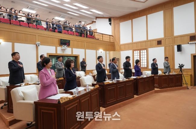 안문길 의장은 개회사를 통해 “이번 회기에 상정된 안건들에 대해 의원님들께서는 시민의 눈높이에서 면밀히 검토해 주시기 바라며, 집행부에서도 결산검사 준비와 안건 심사에 차질이 없도록 성실하고 책임 있는 자세로 협조해 달라”고 당부했다.