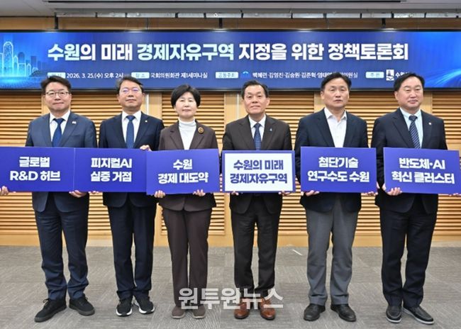 이재준 시장은 25일 국회의원회관 제1세미나실에서 열린 ‘수원 경기경제자유구역 지정을 위한 정책토론회’에서 “수원 경기경제자유구역에 연구 중심 기업을 유치해 ‘첨단산업 생태계’를 만들어 갈 것”이라며 “수원은 첨단기술 연구 분야에 집중해 ‘연구는 수원에서 제조는 지방에서’를 실현하고, 대한민국 균형발전에 앞장서겠다”고 밝혔다.