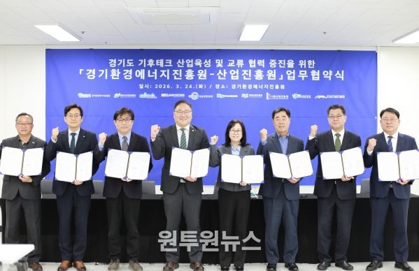 (원투원뉴스) 고양산업진흥원이 지난 24일 경기환경에너지진흥원에서 ‘경기도 기후테크 산업 육성 및 교류 협력 증진을 위한 업무협약(MOU)’을 체결했다.