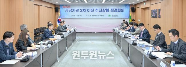 (원투원뉴스) 대구광역시는 3월 25일 시청 동인청사에서 김정기 대구광역시장 권한대행 주재로 ‘공공기관 2차이전 유치위원회’ 민간위원과 관계부서가 참여한 가운데, 2차 이전 추진상황을 점검하고 향후 대응계획을 논의했다.