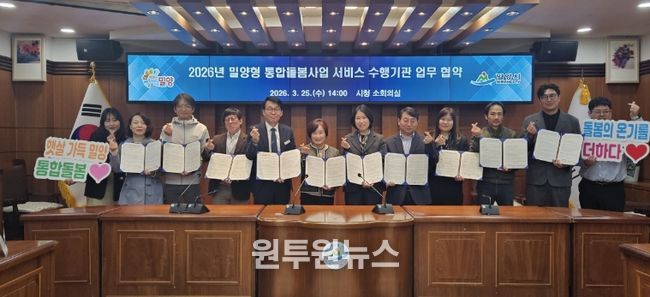시 관계자는 “이번 협약은 공공과 민간이 하나의 돌봄 네트워크를 구축하는 출발점”이라며 “밀양형 통합돌봄이 안정적으로 정착할 수 있도록 관계기관과 협력하여 촘촘한 돌봄체계를 만들어 나가겠다”고 말했다.
