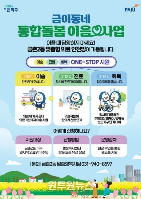 금촌2동의 통합돌봄 이음사업은 의료위기 주민을 대상으로 이송, 진료, 회복을 한 흐름으로 연결하는 원스톱 지원 체계다.