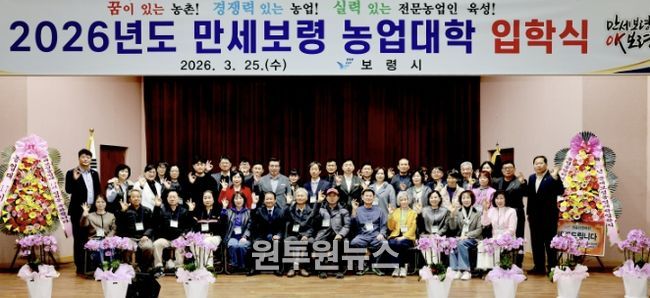 (원투원뉴스) 보령시는 지난 25일 보령시농업기술센터 농업교육관에서 만세보령농업대학 입학생 58명이 참석한 가운데 2026년 만세보령농업대학 입학식을 개최했다.