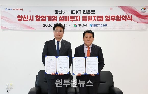(원투원뉴스) 양산시는 지난 25일 IBK기업은행과 ‘양산시 창업기업 설비투자 특별지원’ 협약을 체결했다고 밝혔다.