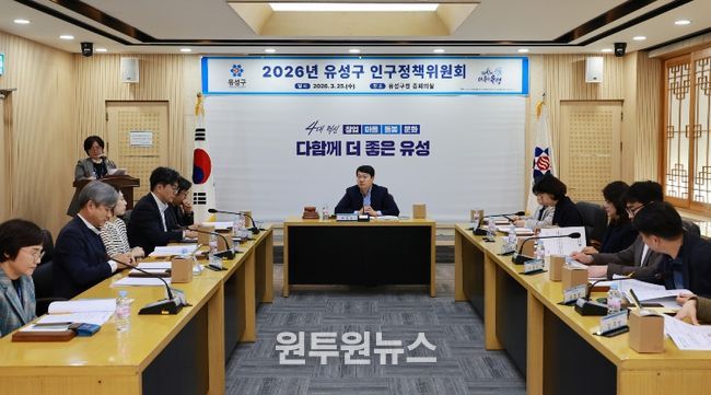 유성구는 지난 25일 유성구청 중회의실에서 ‘2026년 제1차 인구정책위원회’를 열고, 모든 세대의 삶의 질 향상과 지속 가능한 도시 성장을 위한 ‘2026년 인구정책 시행계획’을 확정했다.