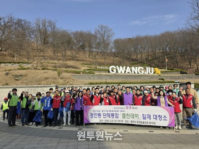 (원투원뉴스) 광주시 경안동은 지난 25일 지역 내 주요 단체가 참여한 가운데 ‘단체통합 국토 대청결 클린데이’를 실시했다.