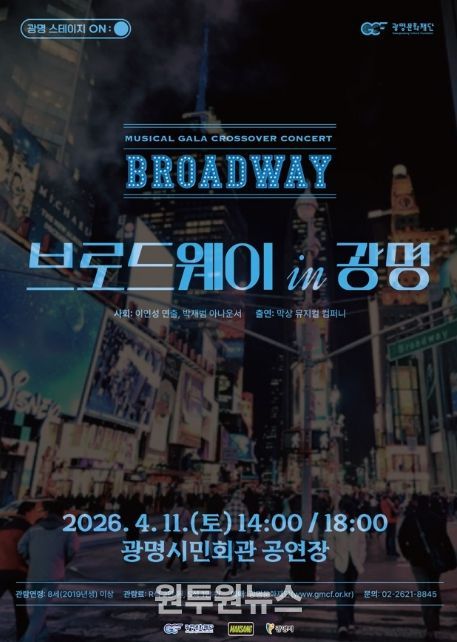 (원투원뉴스) (재)광명문화재단은 오는 4월 11일 오후 2시와 6시, 광명시민회관에서 크로스오버 콘서트 '브로드웨이 IN 광명'을 개최한다.