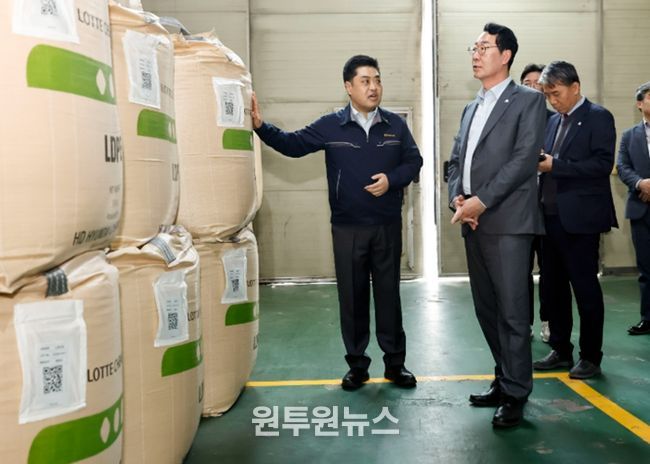 정명근 시장은 공장 내 원료창고를 직접 둘러보며 △원자재 입고 현황과 △재고 상태 △가격 상승 추이를 면밀히 확인하고 현장의 어려움을 청취했다.