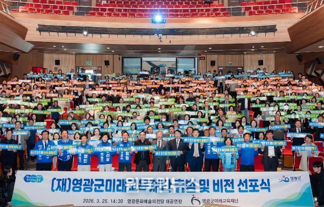 (원투원뉴스) (재)영광군미래교육재단이 지난 25일 '영광군미래교육재단 출범 및 비전선포식'을 개최하고, 미래인재 양성과 지속 가능한 교육지원 체계 구축을 위한 힘찬 출발을 알렸다.