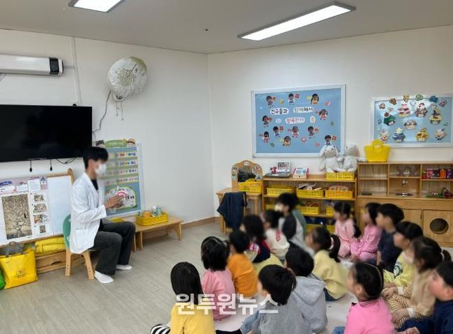 (원투원뉴스) 고성군은 어린이 치아우식증 예방 사업으로 관내 어린이집 및 유치원 9개소에 보건소 치과 공중보건의사가 직접 방문하여 5~7세 아동 300여명을 대상으로 3월 16일부터 4월 1일까지 불소도포와 올바른 칫솔질 방법 등 구강교육을 진행하고 있다고 밝혔다.