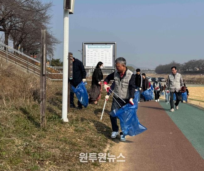 (원투원뉴스) 세종특별자치시 조치원읍이 26일 조천변 벚꽃길 일원에서 환경정화활동을 펼쳤다.