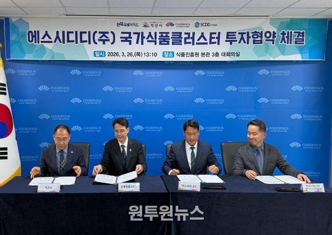 익산시는 26일 국가식품클러스터 입주기업 '에스시디디㈜(대표 강병수)'와 국가식품클러스터 내 제3공장 건립을 위한 투자협약을 체결했다.