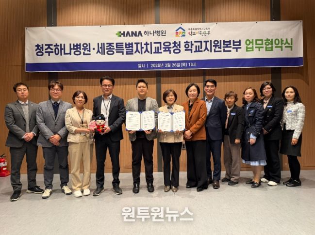 학교지원본부는 3월 26일(목), 충북 청주시에 위치한 하나병원(병원장 박기홍)에서 교원 치유 지원사업을 위한 업무협약을 체결하고, 세종시 교원들을 위한 전문적인 의료 지원 서비스를 대폭 확대한다고 밝혔다.