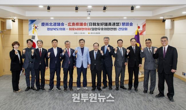 (원투원뉴스) 경상북도의회는 3월 26일 일본 히로시마현의회 나카모토 타카시 의장 등 일한우호의원연맹 소속 의원 6명이 경상북도의회를 방문했다고 밝혔다.