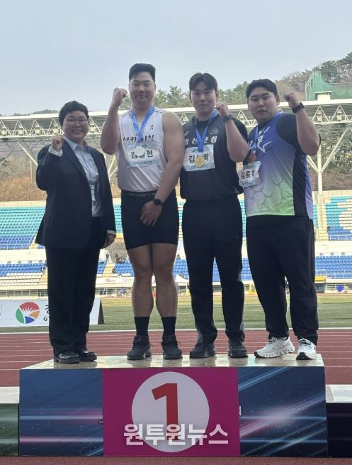 (원투원뉴스) 충북 괴산군 직장운동경기부 육상팀이 3월 25일부터 경남 김해종합운동장에서 열린 ‘2026 김해 KTFL 전국실업육상경기대회’에서 금메달 1개와 동메달 1개를 획득하며 눈부신 활약을 펼쳤다.