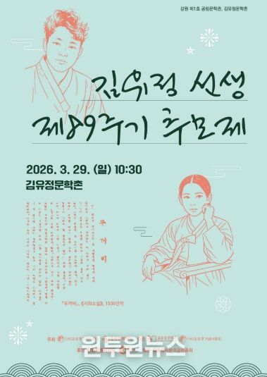 (원투원뉴스) 한국 근대문학을 대표하는 춘천 출신 소설가 김유정 선생의 문학정신을 기리고 계승하기 위한 추모 행사가 열린다.