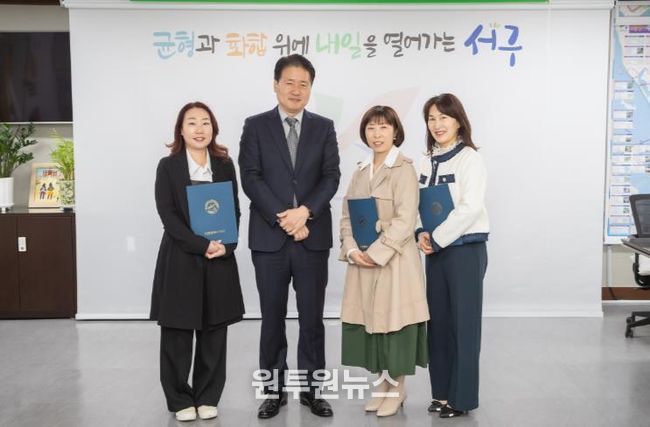 (원투원뉴스) 인천 서구는 지난 26일 국공립어린이집 운영자로 선정된 신규 위탁운영자 2명, 재위탁 운영자 1명, 총 3명의 위탁운영자와 위탁계약을 체결하고 위탁계약증서를 전달했다.