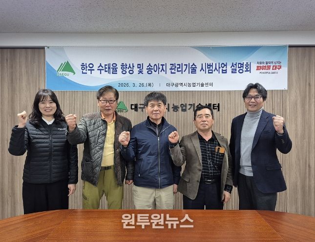 (원투원뉴스) 대구광역시농업기술센터는 3월 26일 ‘한우 수태율 향상 및 송아지 관리기술 시범사업 설명회’를 개최하고, 사업을 본격 추진한다.