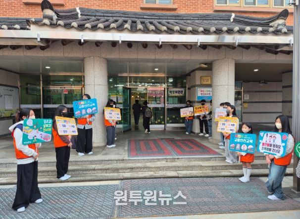 이번 캠페인은 학생들이 주도적으로 준비하고 질서정연하게 참여한 아침 활동으로, 학생들의 등교 시간에 맞춰 아침 시간대에 진행됐다. 참여 학생들은 교통안전과 학교폭력 예방 메시지가 담긴 피켓을 들고 구호를 외치며 어린이 보호구역에서 교통안전과 학교폭력 예방의 중요성을 알렸다.