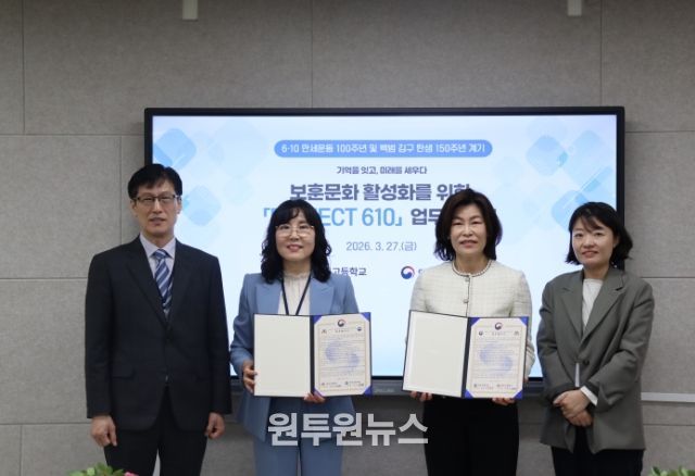 (원투원뉴스) 국가보훈부 인천보훈지청은 27일, 인천 문곡고등학교와 보훈문화 활성화를 위한 업무협약(MOU)을 체결했다고 밝혔다.