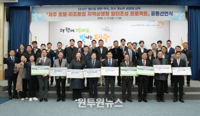 제주특별자치도는 27일 오전 11시 도청 탐라홀에서 「제주 호텔·리조트업 지역상생형 일터조성」 공동선언식을 개최했다.