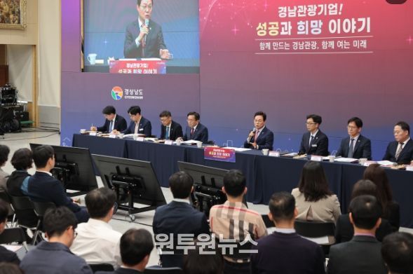 경남도는 27일 오후 도청 대회의실에서 박완수 도지사를 비롯해 관광기업인, 관광 분야 전공 학생 및 청년 인재, 유관기관 관계자 등 90여 명이 참석한 가운데 ‘2026 경남 관광기업 성공과 희망 이야기’ 간담회를 개최했다. 이번 간담회는 관광 현장의 애로사항을 청취하고, 향후 관광 정책의 방향성을 논의하기 위해 마련됐다.