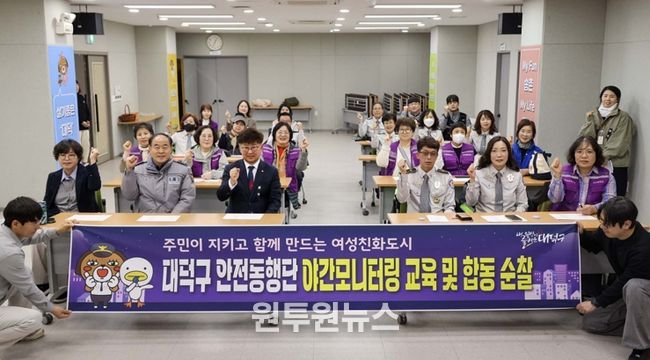 (원투원뉴스) 대전 대덕구는 27일 주민 참여를 통한 안전한 마을 환경 조성을 위해 송촌동 일원에서 ‘안전동행단 야간모니터링 교육 및 합동순찰’을 실시했다고 밝혔다.