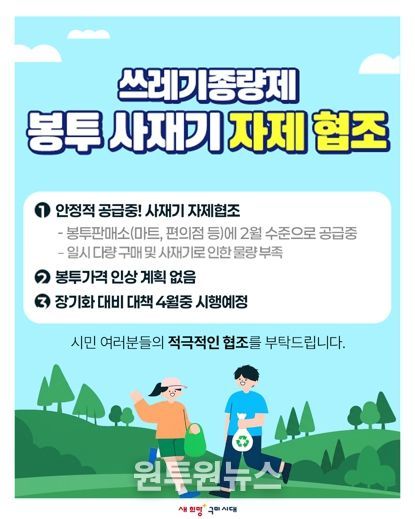 시는 봉투 수급 상황을 실시간으로 관리하기 위해 재고량을 매일 점검하고 있다. 동시에 판매소별 공급량을 지난 2월 수준으로 유지해 특정 지역이나 일부 판매소에 수요가 집중되는 현상을 차단하고 있다.