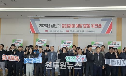 (원투원뉴스) 강원특별자치도는 3월 27일 오후 1시 춘천 베어스호텔에서 도·시군, 고용노동부 등 관계자 50여 명이 참석한 가운데 ‘2026년 상반기 중대재해 예방 합동 워크숍’을 개최했다. 이번 워크숍은 중대재해처벌법 엄정 대응 기조에 맞춰 실질적인 사고 예방과 현장 실무자의 대응 역량 강화를 위해 마련됐다.