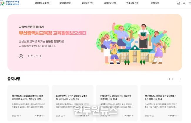 (원투원뉴스) 부산광역시교육청 교육활동보호센터가 홈페이지를 새롭게 개설하고 교원들의 교육활동 보호 체계 강화에 나섰다.