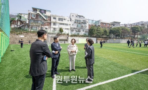 구는 지난해 서울시교육청 인조잔디 대응투자 계획에 따라 지원 대상으로 확정된 용산중학교에 교육경비보조금 1억 5천만원을 교부하기로 결정했으며, 그동안 학교에서 제기해 온 운동장 환경 개선 요구를 반영해 올해 인조잔디 공사를 마무리했다.