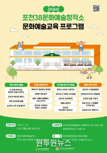 포천38문화예술창작소는 앞으로도 다양한 문화예술교육과 전시, 공간 운영을 통해 시민과 더욱 가까이 호흡하는 지역 문화예술공간으로서의 역할을 이어갈 계획이다.
