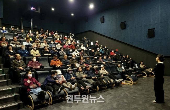 이번 프로그램은 문화 활동의 기회가 상대적으로 부족한 어르신들에게 영화관람을 통한 문화·여가 활동의 기회를 제공하고 일상 속 활력을 높이기 위해 마련됐으며, 이날 행사에는 복지관 이용 회원 93명이 참여해 영화 ‘왕과 사는 남자’를 함께 관람했다.