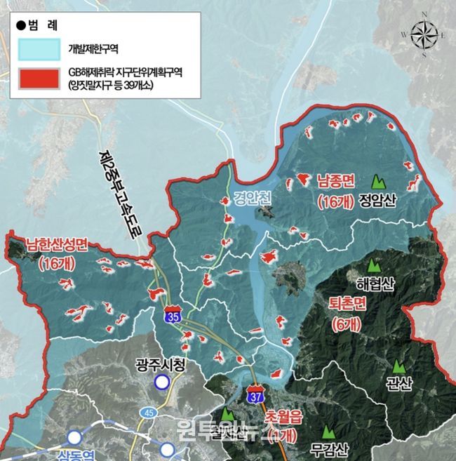 (원투원뉴스) 광주시는 오는 6월 실효가 예정된 장기 미집행 도시계획시설 문제에 선제적으로 대응하고 불합리한 토지이용계획을 개선하기 위한 ‘개발제한구역 해제 취락 지구단위계획 재정비 결정(변경) 및 지형도면’을 고시한다고 30일 밝혔다.