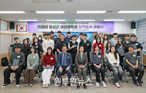 (원투원뉴스) (재)임실군애향장학회(이사장 심민)가 27일, 장학생으로 선발된 대학생과 고등학생을 대상으로 2026년도 임실군 애향장학생 장학증서 수여식을 개최했다.