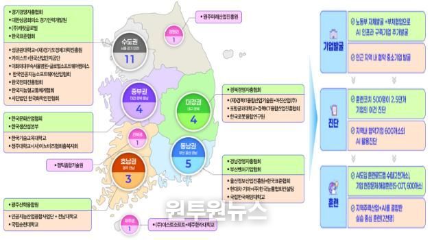 (원투원뉴스) 고용노동부와 한국산업인력공단은 인프라가 부족한 지역(5극 3특) 중소기업에 AI 훈련이 원활하게 공급될 수 있도록 중소기업AI훈련확산센터 10개소와 AI특화 공동훈련센터 20개소를 선정했다고 밝혔다.