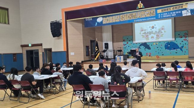 (원투원뉴스) 민주평화통일자문회의 무안군협의회(협의회장 송남수)는 3월 30일 무안 망운초등학교 목양관에서 전교생 29명을 대상으로 '2026년 평화통일 시민교실'을 개최했다고 밝혔다.