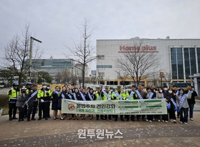 (원투원뉴스) 수원특례시는 30일 수원시청역 일원에서 ‘공유 자전거·전동킥보드 불법주차 견인강화’ 홍보 캠페인을 펼쳤다.