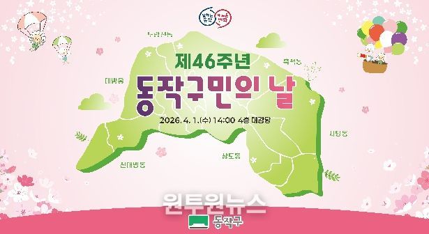 (원투원뉴스) 동작구가 오는 4월 1일, 제46주년 구민의 날을 맞아 ‘동작구민의 날 기념식’을 개최한다고 밝혔다.