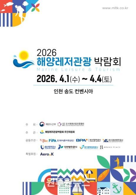 (원투원뉴스) 해양수산부는 4월 1일부터 4일까지 인천 연수구 송도컨벤시아에서 국내 최대 규모의 해양관광 전시회인 ‘2026 해양레저관광 박람회’를 개최한다고 밝혔다.
