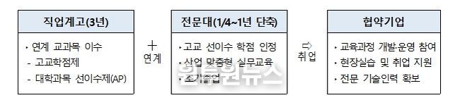 이 사업은 전문대학이 직업계고와 협력하여 교육과정을 연계하고 전문학사 취득 기간을 1학기 이상 단축함으로써, 지역 산업에 필요한 전문 기술인재를 조기에 양성할 수 있도록 올해 처음 재정지원 사업으로 추진된다.