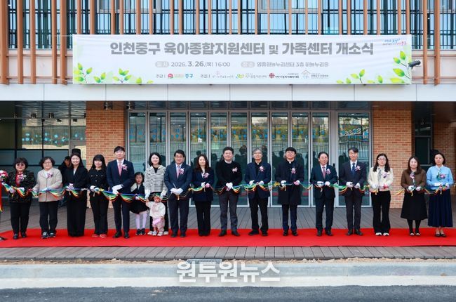 (원투원뉴스) 인천 중구의회는 지난 3월 26일 영종하늘누리센터에서 열린 ‘중구가족센터 및 육아종합지원센터 공동 개소식’에 참석해 영종 지역의 새로운 통합 돌봄 거점 탄생을 축하하고 시설 현황을 점검했다.