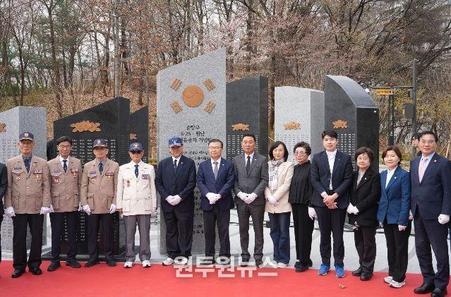 (원투원뉴스) 중랑구가 3월 31일 신내1동 배말공원에서 호국보훈 기념공간 조성에 따른 ‘6‧25‧월남 참전유공자 기념비 제막식’을 개최했다.